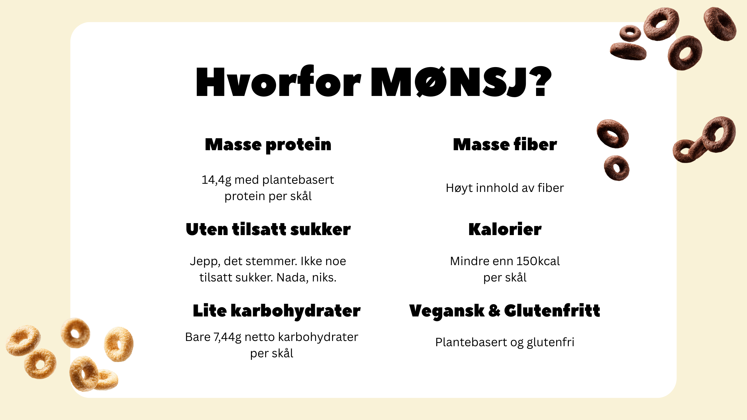Med MØNSJ blir proteinmålet ditt lekende lett å nå, uten kompromiss på smak eller næring.
